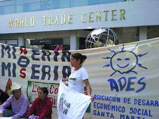 Environmentalist and human rights defender Vidalina Morales, president of the Association for Economic and Social Development ADES, Santa Marta, expressed to the crowd that communities and organizations defending the environment will not recognize any resolution resulting from the ICSID. The ICSID, she said is a "perverse instance designed to protect big business and not the rights of communities."