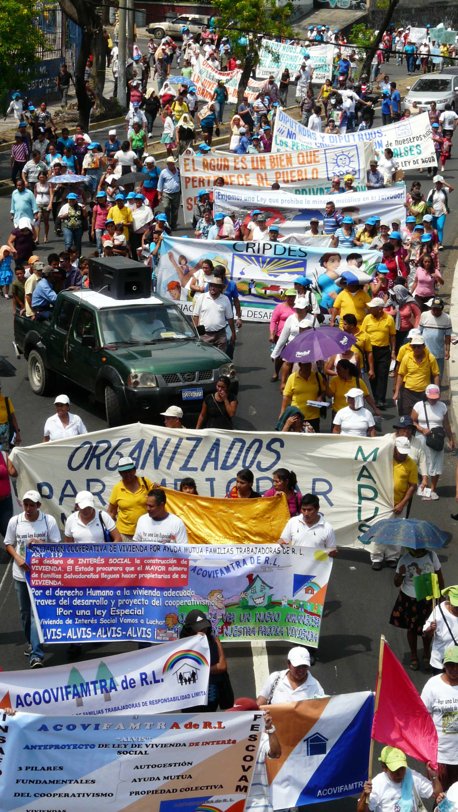 economy, public safety, and corruption of previous governments have dominated the public debate, while critical environmental issues affecting thousands of communities and millions of people in El Salvador have taken a back seat. A presidential forum on the environment scheduled for the middle of January was actually cancelled due the lack of interest on the side of the presidential campaigns. In response, environmental organizations organized a noisy car caravan through San Salvador to deliver petitions to the campaign offices of the political parties. The petition letter included demands for the parties to include in their political agendas "clear proposals for the management of a sustainable water supply, food security and support for the agricultural sector, comprehensive environmental risk management policies, and a commitment to end the threat of mega mining and hydroelectric projects."