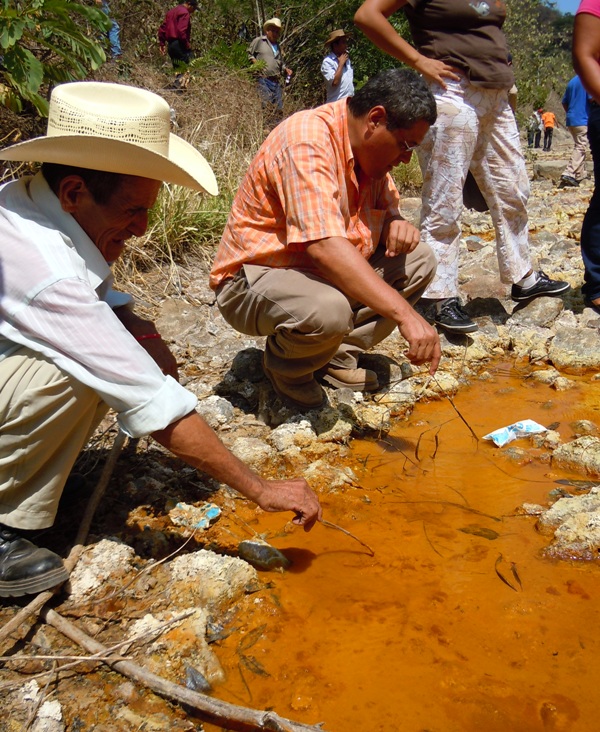 At the petition of the Research of Investment and Trade Center (CEICOM), who associates the numerous causes of death in the locals of Santa Rosa de Lima with causes related to mining, the Vice-Minister of Environment and Natural Resources, Lina Pohl visited the hamlet of El Comercio this morning to see firsthand the investigations that the MARN was doing at the river.